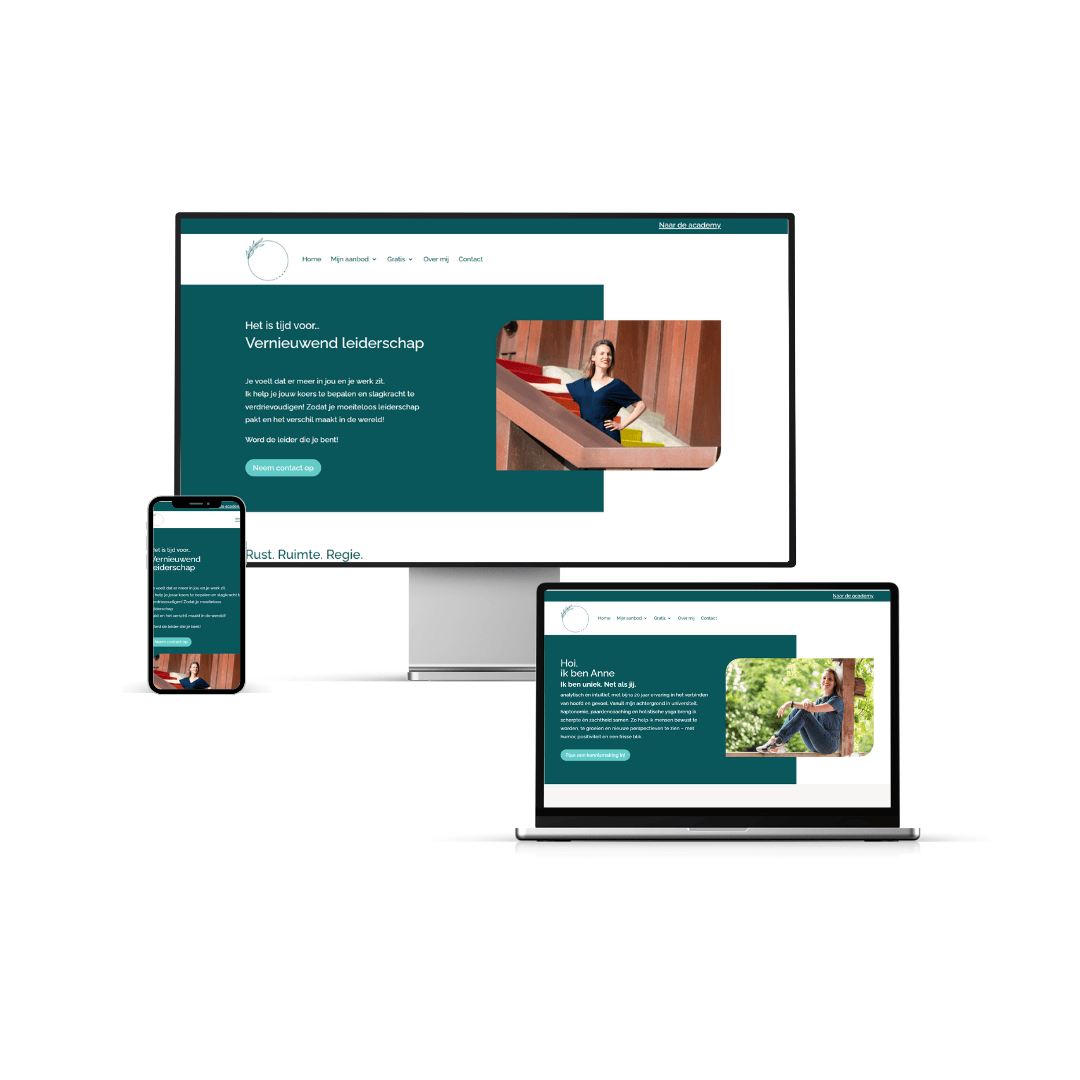 Anne had al een website met leeromgeving maar na verschillende technische mankementen klopte te bij mij aan. Ik zetten haar website opnieuw op, inclusief logische klantreis en bouwde haar academy op een subdomein waardoor de balast niet te koste gaat van eigen website.